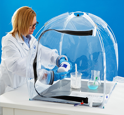브리더 필터가 장착된 컴팩트하며 휴대가 가능한 아이솔레이터로 실험실 규모의 안전한 밀폐 환경을 만드는데 적합한 Isolator입니다.